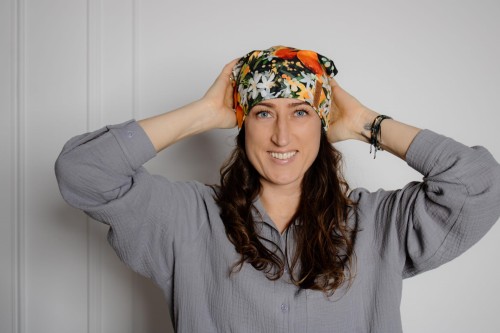Czapka dresowa we wzory KWIAT POMARAŃCZY to lekko długa, miękka czapka uszyta z elastycznej dzianiny dresowej z autorskim wzorem. Dobrze układa się na głowie, nie uciska i daje komfort noszenia na co dzień. Materiał jest przyjemny w dotyku i odpowiedni na chłodniejsze dni, a dłuższa forma dodaje jej swobodnego, codziennego charakteru.