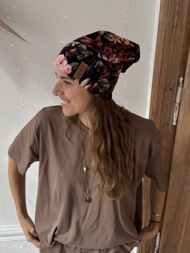 Czapka dresowa we wzory RETRO KWIATY to lekko długa, miękka czapka uszyta z elastycznej dzianiny dresowej z autorskim wzorem. Dobrze układa się na głowie, nie uciska i daje komfort noszenia na co dzień. Materiał jest przyjemny w dotyku i odpowiedni na chłodniejsze dni, a dłuższa forma dodaje jej swobodnego, codziennego charakteru.