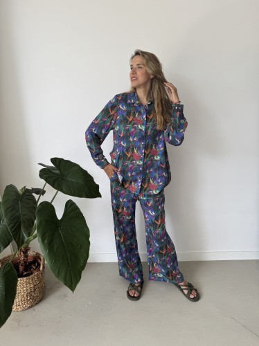 Spodnie szerokie z wiskozy RAJSKI PTAK możesz połączyć z koszulą w tym samym wzorze, tworząc efektowny letni komplet.